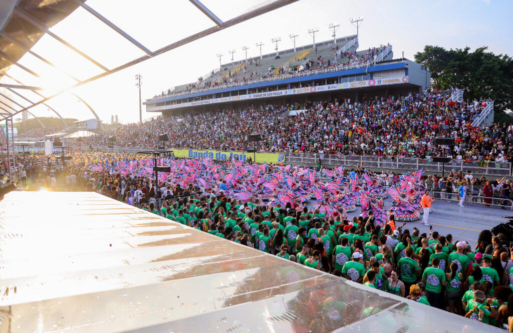 Os ingressos são comercializados por data, setor e lote, com valores a partir de R$ 320, variando conforme o dia de desfile e a área escolhida. Todos os acessos incluem abadá, disponível nos tamanhos P, M, G, GG, XG, MOMO e MOMO 2.