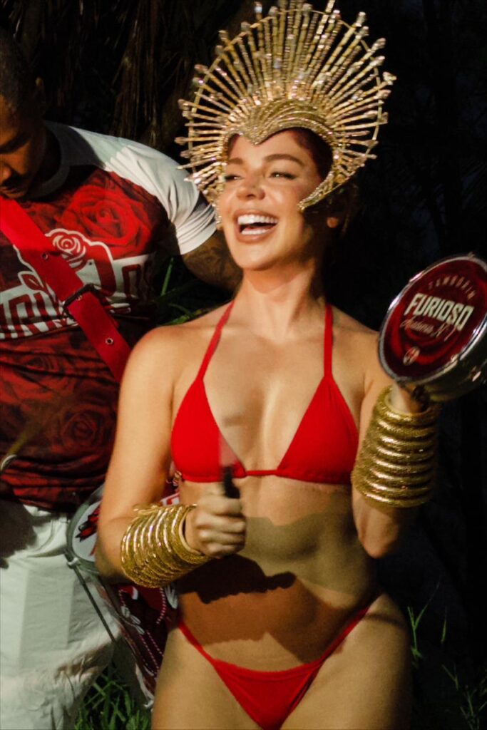 A experiência ganhou ainda mais força com a presença da bateria da escola de samba Salgueiro, que trouxe a verdadeira folia do Carnaval para dentro de um cenário espetacular, onde as fotos da coleção com a Versiani Swim acontecia. Gkay é musa da escola e fez questão de levar o samba para o centro da ação, conectando moda praia ao coração do carnaval carioca.